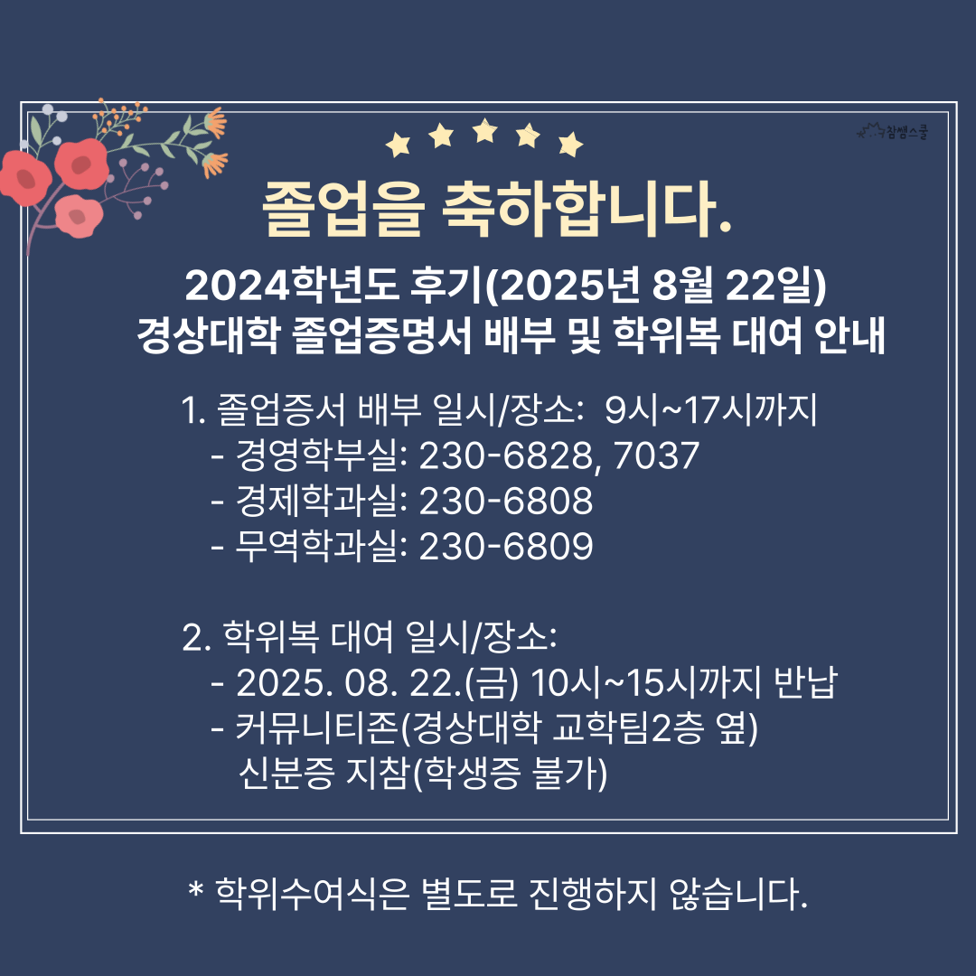 2024학년도 후기(2025.8월) 졸업증명서 배부 및 학위복 대여 안내